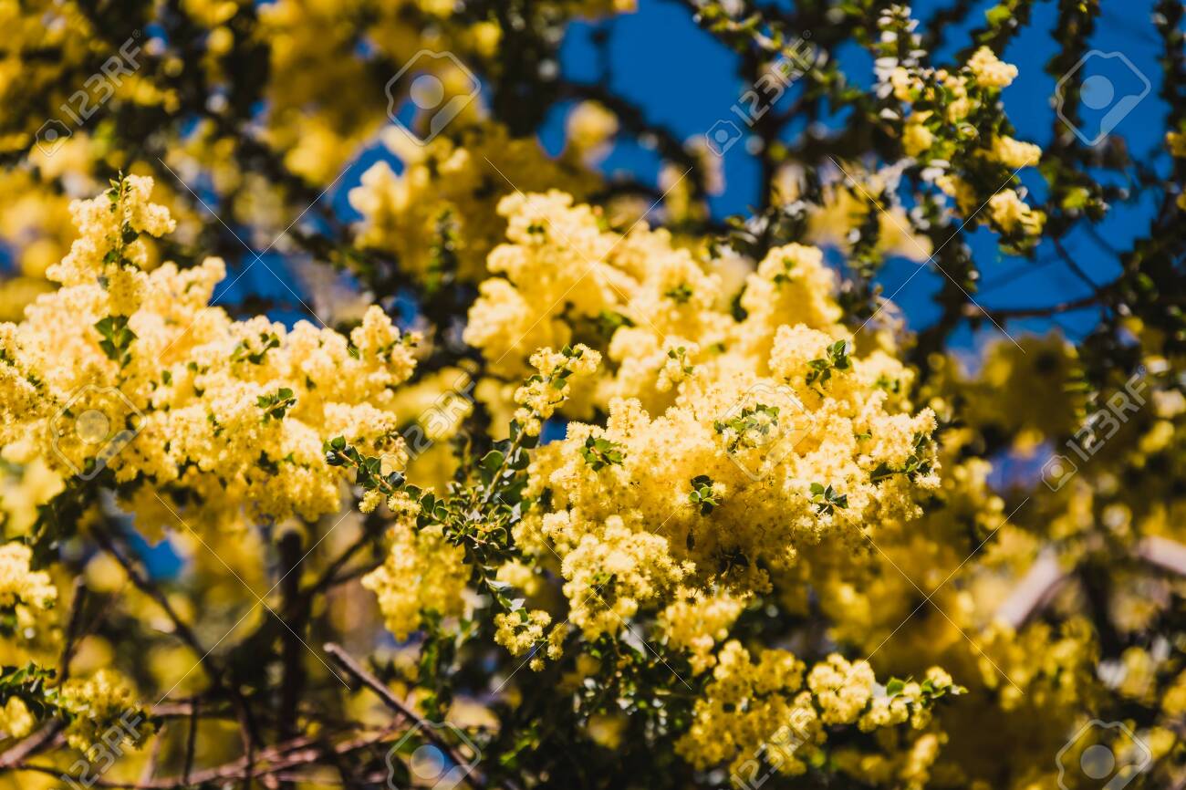 - Flower Description: Bright yellow, fluffy ball-shaped flowers in clusters