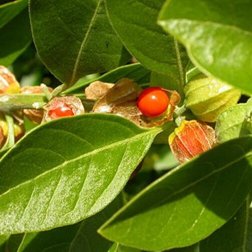 These high-germination Ashwagandha seeds are carefully selected and packaged to ensure reliable growth. The plant thrives in well-drained soil and sunny conditions, developing into a resilient shrub with characteristic green foliage and red-orange berries.