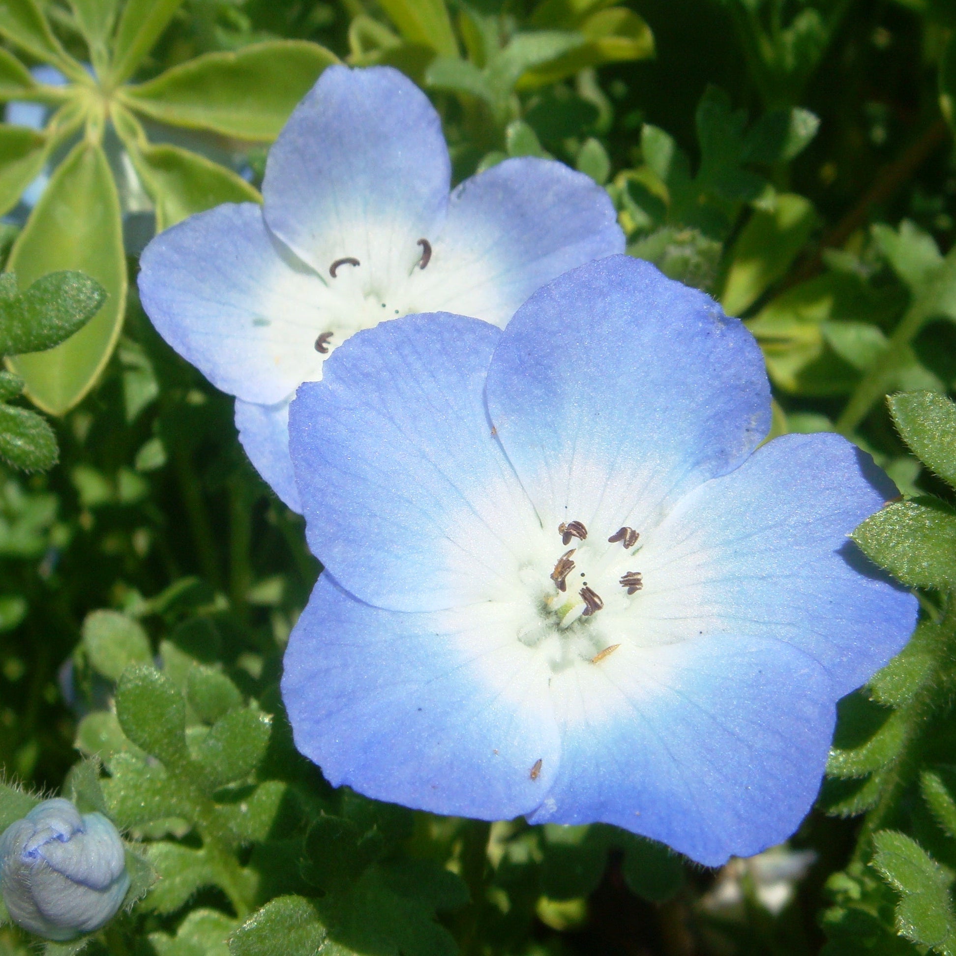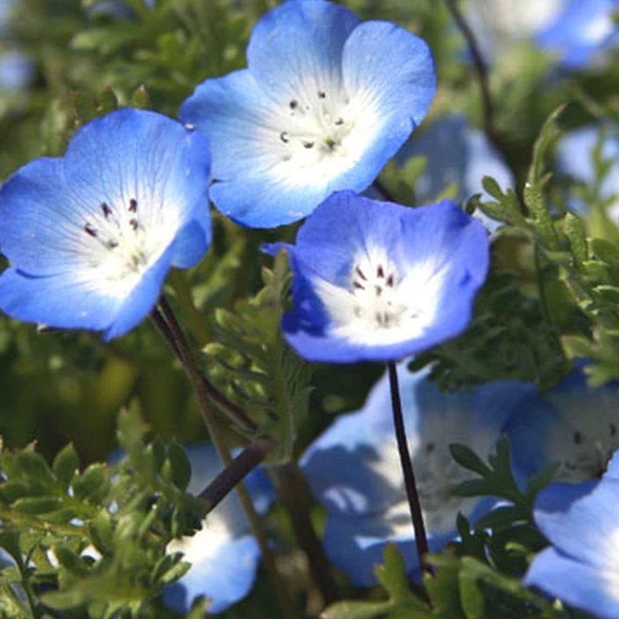 Vibrant Blue Flowers: Nimophila’s soft, sky-blue petals with white centers make them a stunning addition to any garden or landscape.